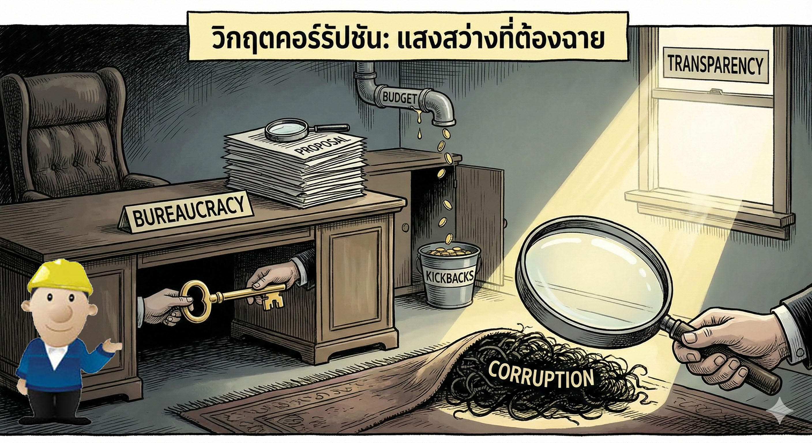 คอร์รัปชันในระบบราชการไทย ไม่ได้จำกัดอยู่แค่ภาพจำเดิมๆ อย่างการยัดเงินใต้โต๊ะให้ตำรวจจราจร หรือการจ่าย "ค่าน้ำร้อนน้ำชา" เพื่อลัดคิว แต่ได้วิวัฒนาการไปสู่รูปแบบที่ซับซ้อนขึ้น แยบยลขึ้น และตรวจสอบได้ยากขึ้น โดยอาศัยช่องโหว่ของกฎหมายและอำนาจที่ตรวจสอบไม่ได้ บทความนี้จะพาไปชำแหละโครงสร้างที่เอื้อให้เกิดการทุจริต มูลค่าความเสียหายที่ประเมินค่ามิได้ และทางออกในการฉายแสงสว่างเพื่อฆ่าเชื้อโรคร้ายนี้