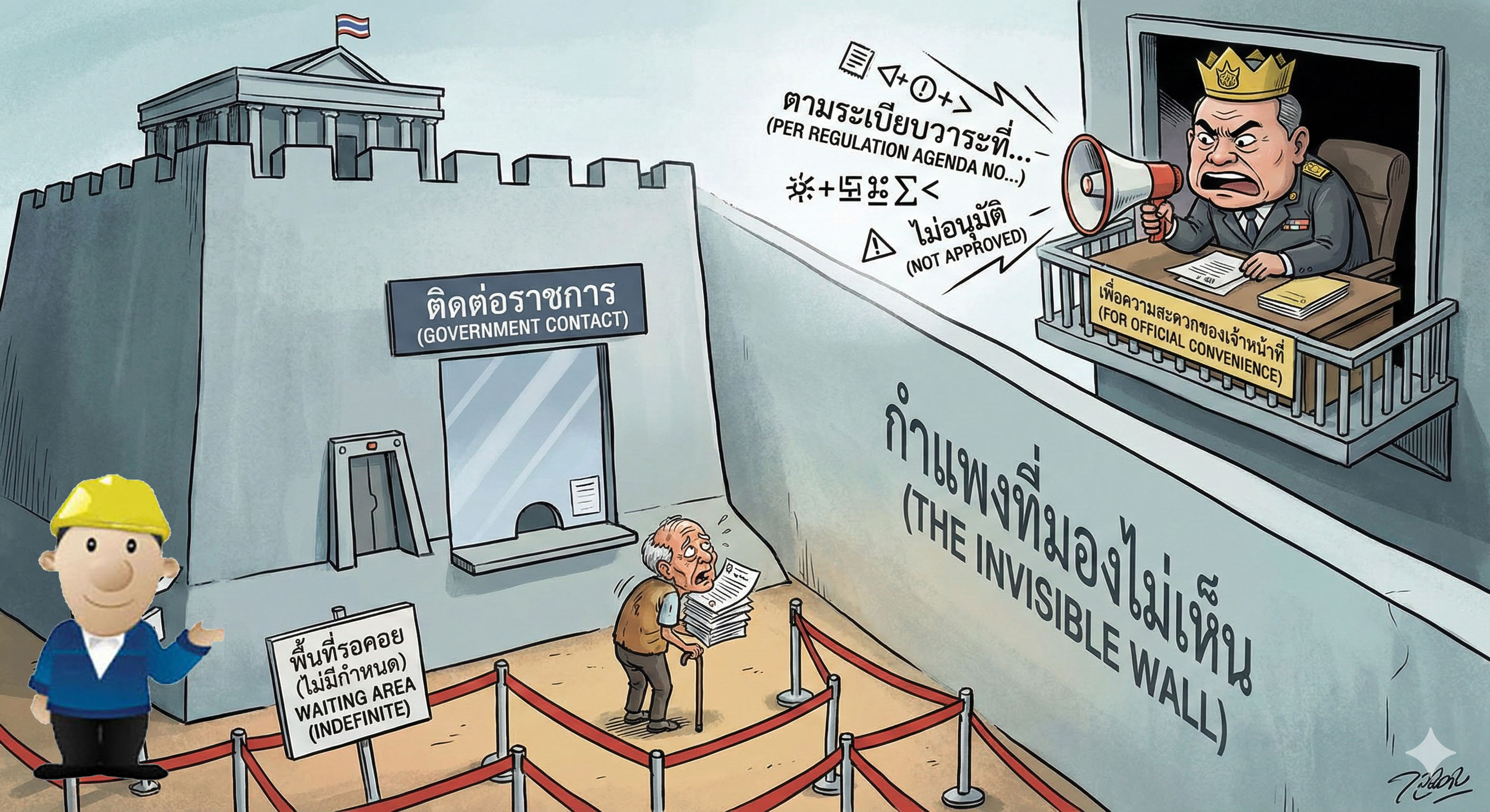 เคยรู้สึกไหมว่า การก้าวเท้าเข้าไปในสถานที่ราชการบางแห่ง เหมือนการเดินเข้าสู่อีกโลกหนึ่ง? โลกที่เวลาเดินช้าลง โลกที่เต็มไปด้วยภาษาเขียนที่เข้าใจยาก โลกที่คุณต้องเป็นฝ่าย "ขอความกรุณา" และโลกที่กฎระเบียบของเจ้าหน้าที่สำคัญกว่าความเดือดร้อนของคุณ