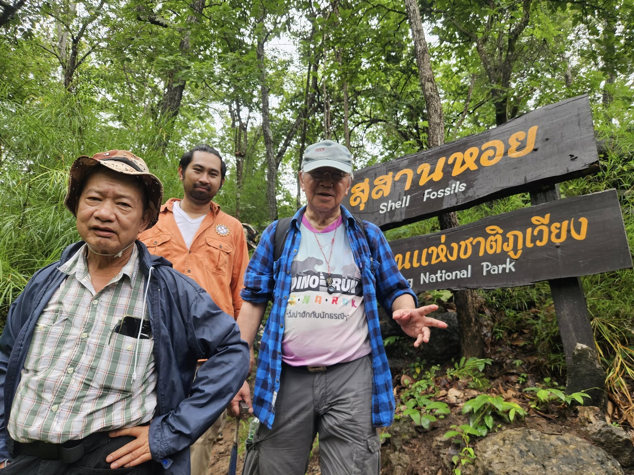 วันนี้ ข้าพเจ้าได้มาเยี่ยมชมอุทยานธรณีขอนแก่น Khon Kane Geopark ที่อุทยานแห่งชาติภูเวียง ซึ่งมีดาราในวงการธรณีวิทยาของประเทศไทย มาพร้อมกันหลายท่าน อาทิ ท่านพี่เสือใหญ่ ดร.นเรศ ท่านพี่ ดร.หมู วราวุธ ท่านนายกสมาคมธรณีวิทยาแห่งประเทศไทย พี่กนก พร้อมกับ พี่ตี๋ ไวยพจน์ เจ้าพ่อภูเวียง ซึ่งเคยมาสำรวจศักยภาพแร่ยูเรเนียม ที่หุบเขาภูเวียง เมื่อ 40 ปีทีแล้ว พี่แอ๊ด บัณฑิต อดีตนักธรณีวิทยาปิโตรเลียมของกรมเชื้อเพลิงธรรมชาติ และ ปตท.สผ. ดร.จ่อย นักธรณีวิทยาสิงห์อีสาน จาก ทรัพยากรธรณีเขต 2 และ พี่อิ๊ฟ อังสุมาลิน ผ.อ.จากกรมทรัพย์ เป็นต้น