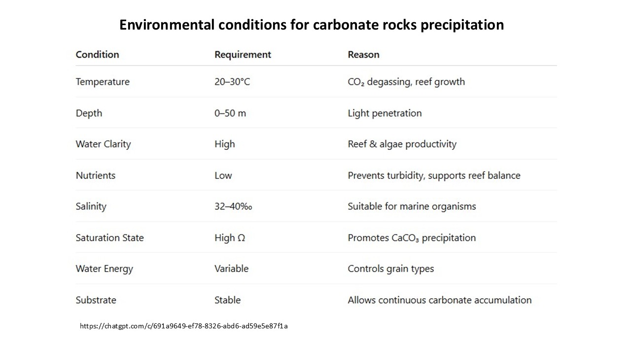Fig 108.2 Environmental condition for Carbonate rocks precipitation