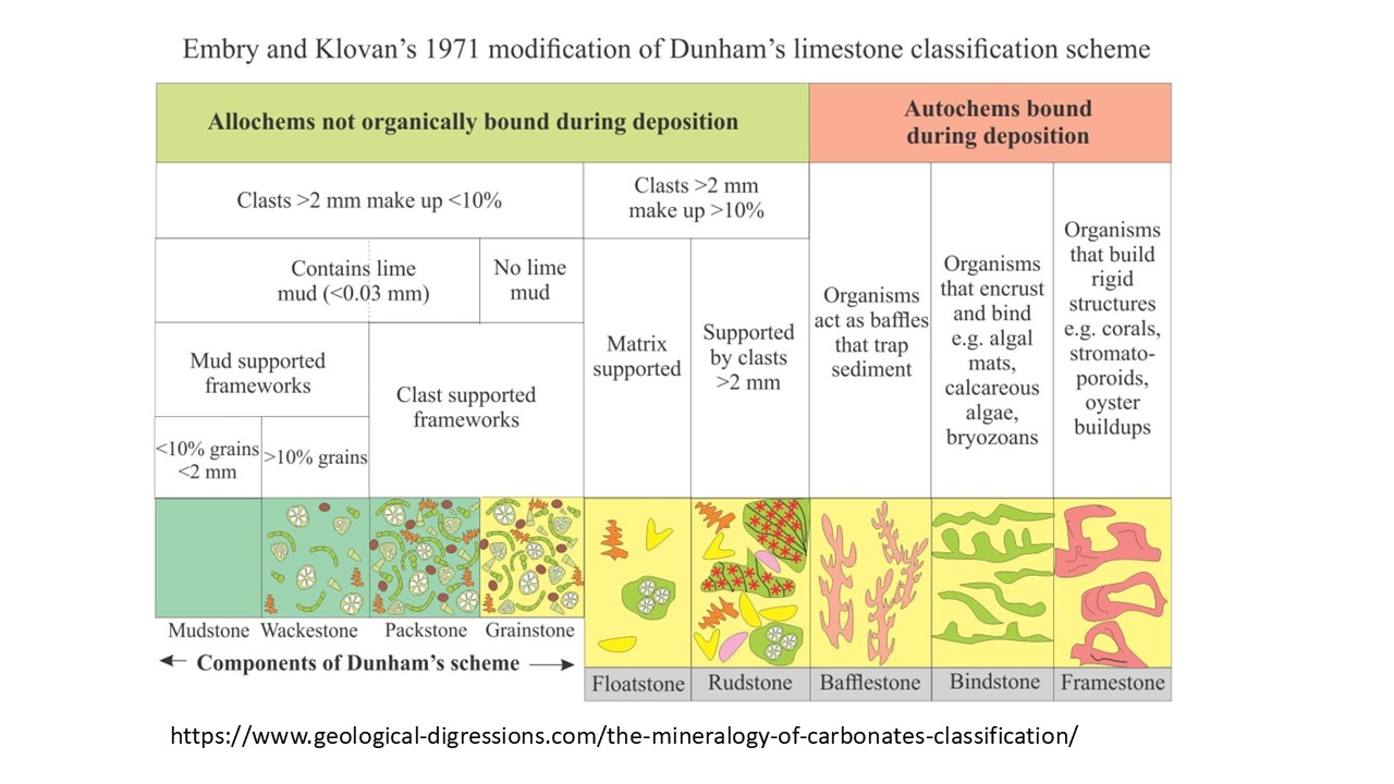 Fig 109.4 Embry and Klovan (1971 ) modified from Dunham limestones Classification