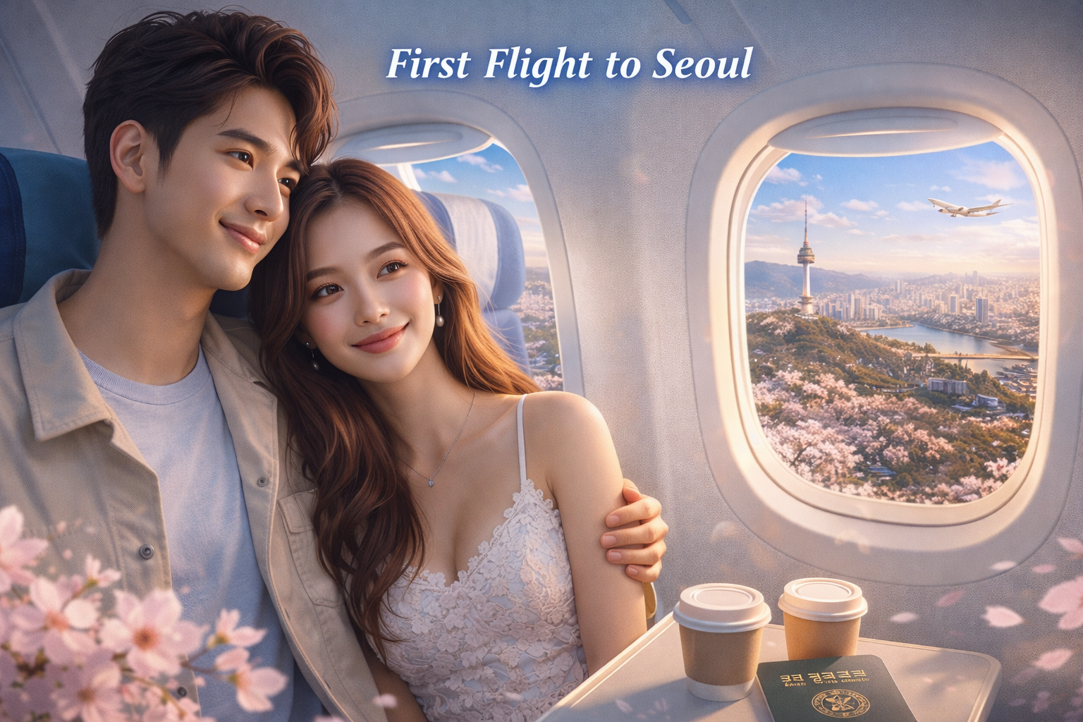 [Chorus]** Oh! First flight to Seoul, สดใสเหมือนดั่งความฝัน หัวใจเต้นรัวไปพร้อมกัน ในเมืองที่เต็มด้วยแสงสี หมุนตัวท่ามกลางซากุระ สวยงามในทุกวินาที ทริปนี้จะมีแต่เรา... Seoul, you’re so beautiful!