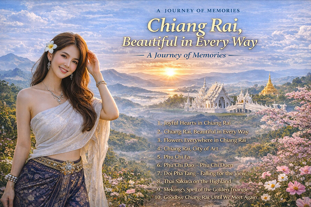 อัลบั้ม เจียงฮายในความทรงจำ (A Journey of Memories Chiang Rai) อัลปั้มเพลงท่องเที่ยวที่ถ่ายทอดความงดงามของ เชียงราย ผ่านเสียงดนตรีอ่อนโยน ฟังสบาย และกลิ่นอายวัฒนธรรมล้านนา ตั้งแต่หมอกยามเช้าบนยอดดอย กาแฟอุ่นในเช้าวันหนาว ศิลปะร่วมสมัยของเมืองเหนือ ไปจนถึงดอกพญาเสือโคร่งบาน มิตรภาพลุ่มแม่น้ำโขง และช่วงเวลาของการอำลาอย่างแสนอบอุ่น