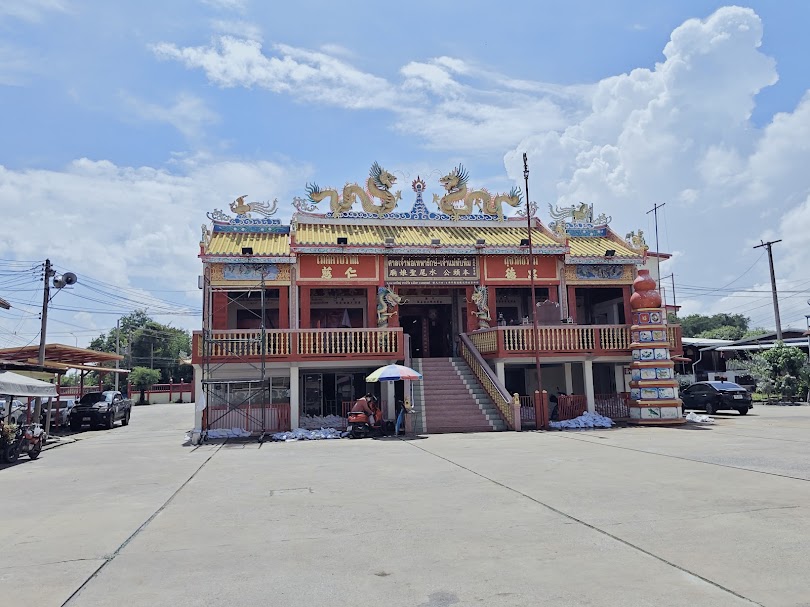 แต่เดิม ศาลเจ้าแห่งนี้เป็นเพียงอาคารไม้ใต้ถุนสูง ตั้งอยู่ริมตลิ่งแม่น้ำอย่างเรียบง่าย ทว่ากาลเวลาและการกัดเซาะของสายน้ำได้ทำให้โครงสร้างเดิมทรุดโทรมลงไปตามธรรมชาติ ด้วยความร่วมมือร่วมใจและศรัทธาอันแรงกล้าของชาวบ้านและผู้มีจิตศรัทธา ศาลเจ้าจึงได้รับการก่อสร้างขึ้นมาใหม่ในปี พ.ศ. 2452 การสร้างครั้งนี้มีความพิเศษยิ่งนัก เพราะเป็นการรวมเอา "ศาลเจ้าพ่อกวนอู" ซึ่งตั้งอยู่ใกล้เคียงเข้าไว้ด้วยกัน ทำให้ศาลเจ้าแห่งนี้กลายเป็นศูนย์รวมเทพเจ้าจีนที่สำคัญหลายองค์ภายใต้หลังคาเดียวกัน สะท้อนให้เห็นถึงความปรารถนาในการรวมพลังแห่งศรัทธาและความเป็นปึกแผ่นของชุมชน