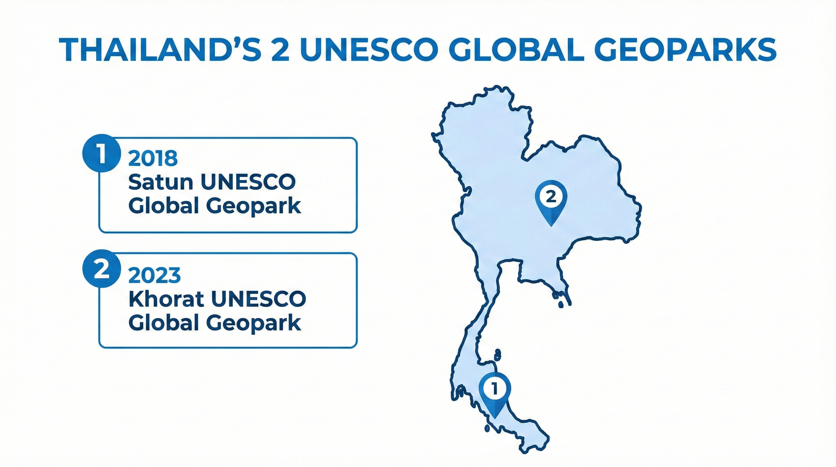 ระดับ 2 อุทยานธรณีไทย เป็นระดับที่ได้รับการยอมรับและเตรียมยกระดับขึ้นสู่การเป็นระดับโลกต่อไป ได้แก่