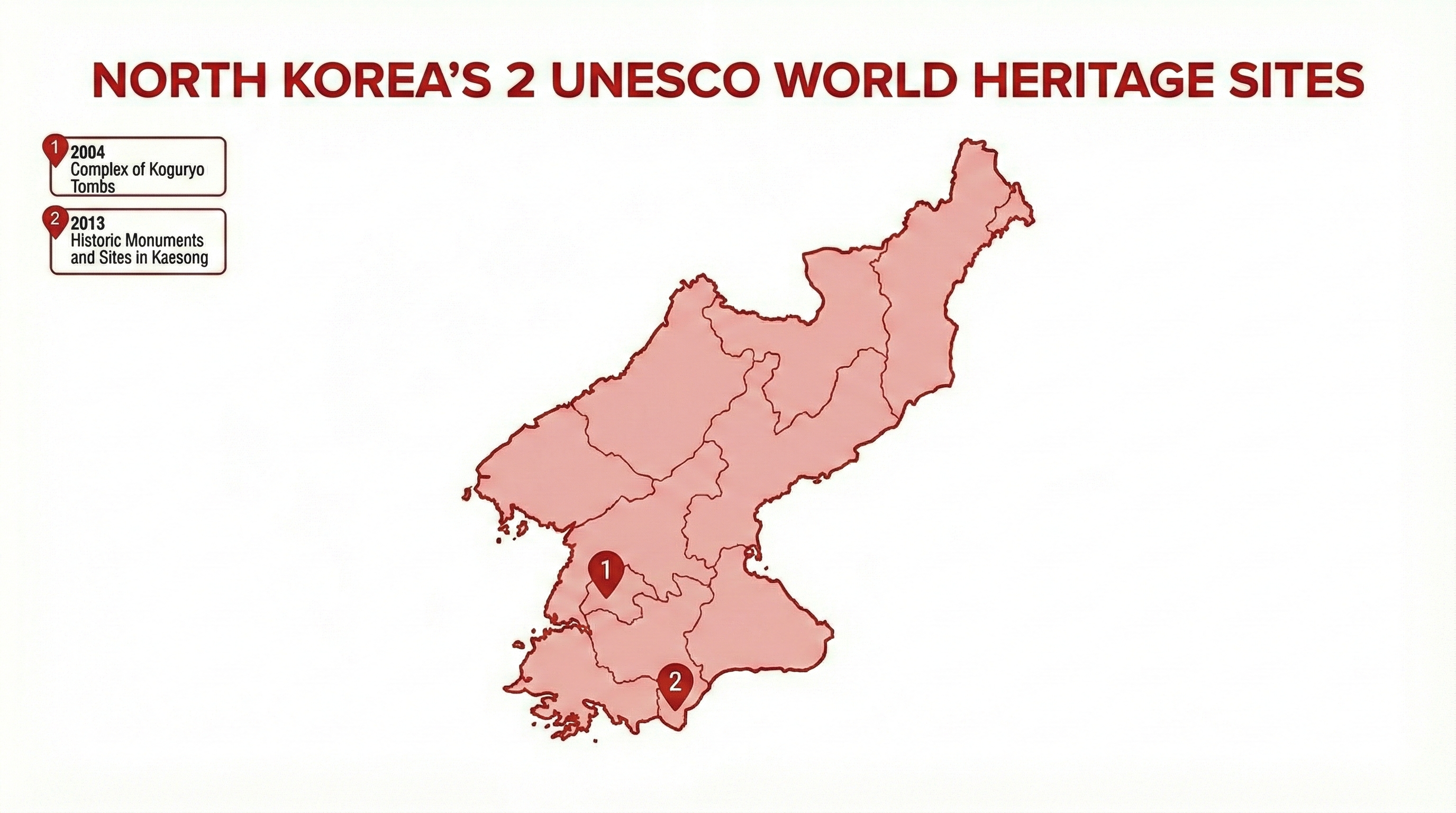 องค์การเพื่อการศึกษาวิทยาศาสตร์และวัฒนธรรม แห่งสหประชาชาติ (UNESCO) ได้ขึ้นทะเบียน แหล่งมรดกโลก (World Heritage Site) ของประเทศ Democratic People's Republic of Koreaได้แก่