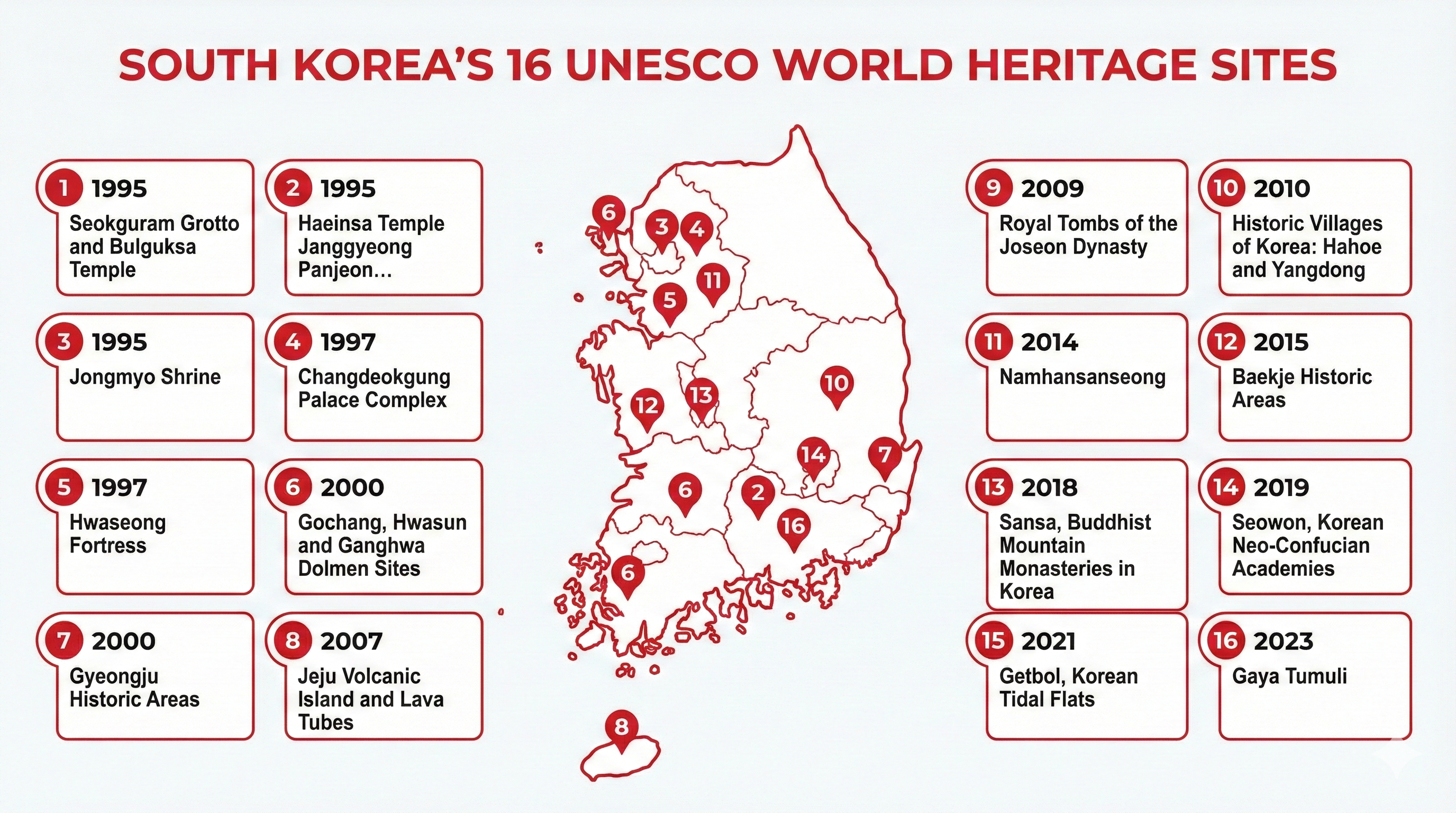 - 1995 ถ้ำซ็อกกูรัมและวัดพุลกุกซา (Seokguram Grotto and Bulguksa Temple)
