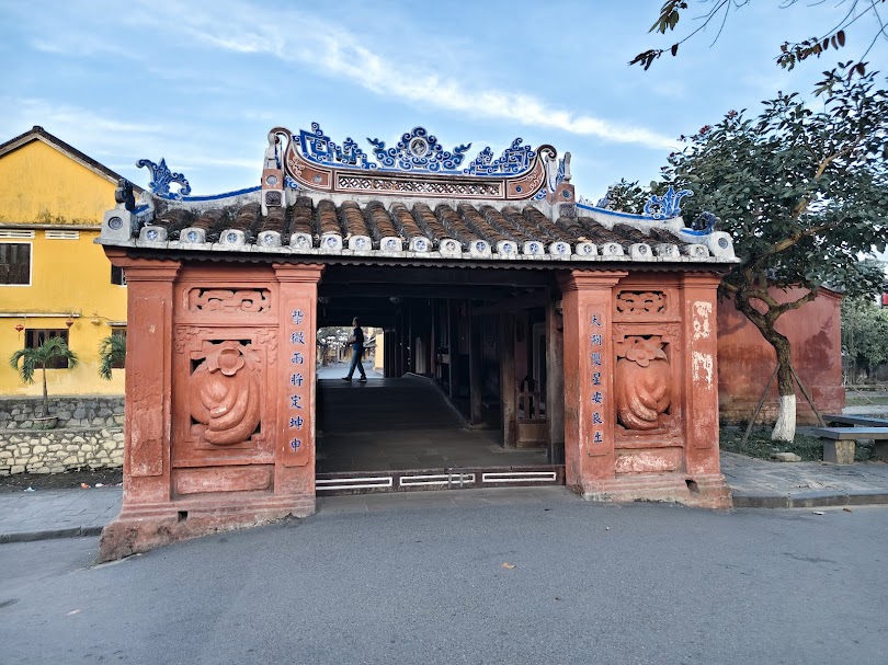กลางสะพานยังมีศาลเจ้าขนาดเล็กซ่อนตัวอยู่อย่างน่าประหลาดใจ ซึ่งเป็นที่มาของชื่อ "จั่วเกิ่ว" (Chùa Cầu) ที่แปลว่า "สะพานวัด" หรือ "สะพานศาลา" ศาลเจ้าแห่งนี้มีความพิเศษตรงที่ไม่ได้ประดิษฐานพระพุทธรูปเหมือนวัดทั่วไปในเวียดนาม หากแต่เป็นที่สถิตของ "เทพเจ้าจั๋นหวู" (Tran Vo Bac De) หรือ "เจินหวูปักเด๋" เทพเจ้าในศาสนาเต๋าผู้ทรงฤทธิ์ในการควบคุมสภาพอากาศ ป้องกันพายุและน้ำท่วม ซึ่งเป็นที่เคารพบูชาของชาวประมงและพ่อค้าในอดีตที่ต้องออกเดินเรือเผชิญหน้ากับความไม่แน่นอนของท้องทะเล การได้ก้าวเข้าไปในศาลเจ้าแห่งนี้จึงไม่ใช่แค่การเยี่ยมชมสถานที่ทางประวัติศาสตร์ แต่ยังเป็นการเชื่อมโยงกับความเชื่อและศรัทธาของผู้คนในอดีตที่เคยฝากชีวิตไว้กับเทพเจ้าผู้พิทักษ์แห่งสายน้ำและท้องฟ้า