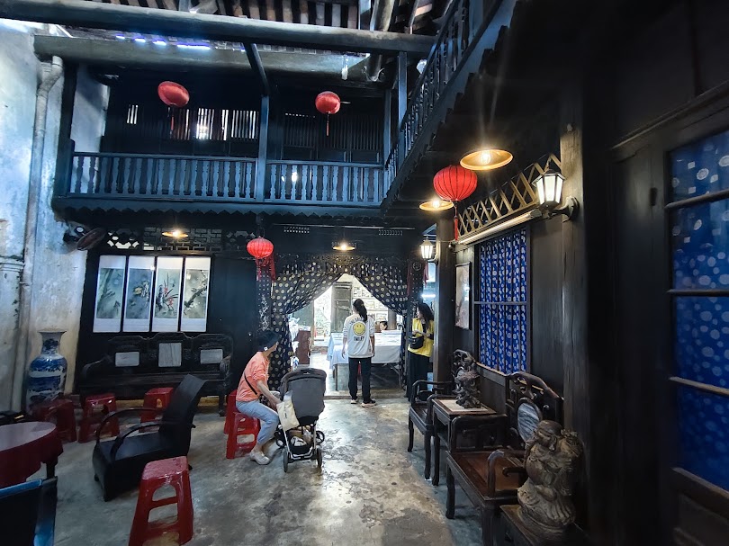 อิทธิพลจีน: ระเบียงไม้แกะสลักอย่างวิจิตรบรรจง โคมไฟประดับตกแต่งสีแดงสดใส และหิ้งบูชาบรรพบุรุษที่เคลือบแล็กเกอร์สีแดง ล้วนแสดงออกถึงอิทธิพลของพ่อค้าชาวจีน โดยเฉพาะจากมณฑลกวางตุ้งและฝูเจี้ยน หลังคาชั้นบนยังมีลักษณะคล้าย "กระดองเต่า" ซึ่งเป็นการออกแบบตามประเพณีจีนที่สื่อถึงการมีอายุยืนยาวและความยั่งยืน