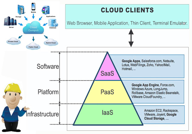 1. การให้บริการโครงสร้างพื้นฐาน (Infrastructure as a Service: IaaS) หมายถึง การให้บริการโครงสร้างพื้นฐานหลักของบริการ Cloud Computing เช่น ระบบประมวลผล ระบบจัดเก็บข้อมูลระบบเครือข่าย ตลอดจนอุปกรณ์พื้นฐานที่เกี่ยวข้อง เช่น Server, Storage หรือระบบปฏิบัติการ (OS) ที่ทำให้สามารถใช้งานซอฟต์แวร์แอพพลิเคชั่นได้อย่างมีประสิทธิภาพ ในส่วนนี้จะประกอบไปด้วยอุปกรณพื้นฐานสำหรับงานไอทีในระบบคลาวด์ และจะให้เข้าถึงคุณสมบัติเครือข่ายคอมพิวเตอร์เสมือนจริงหรือบนฮาร์ดแวร์เฉพาะและพื้นที่จัดเก็บข้อมูล การให้บริการโครงสร้างพื้นฐานมีความยืดหยุ่นและการควบคุมการจัดการทรัพยากรด้านไอทีสูงสุดและคล้ายคลึงกับทรัพยากรไอทีที่มีอยู่ ผู้ใช้ไม่ต้องบริหารจัดการโครงสร้างพื้นฐานเองผู้ให้บริการ Cloud IaaS คือ ผู้ที่ให้บริการเครื่องคอมพิวเตอร์เสมือน (Virtual Server) โดยจะครอบคลุมถึง CPU, RAM, DISK, Network, Server, OS บริการประเภทนี้ผู้ใช้บริการ IaaS จะเป็นผู้จัดหาและจัดทำ Software, license, Install, Configure ด้วยตนเอง จะเป็นการให้บริการเฉพาะโครงสร้างพื้นฐานของระบบเท่านั้น เปรียบเสมือนกับการมี Server 1 เครื่อง ซึ่งมีเพียงแค่หน่วยประมวลผลเสมือน (CPU) หน่วยความจำเสมือน (Memory) ระบบเครือข่าย (Network) และพื้นที่จัดเก็บ ข้อมูลเสมือน (Storage) ซึ่งจะใช้งานได้ก็ต่อเมื่อมีการติดตั้ง ระบบปฏิบัติการ (OS) และ Application ก่อน จึงจะสามารถใช้งานได้ ผู้ใช้บริการจะสามารถเช่าเวลาในการ ประมวลผล ซื้อเวลาและขนาดของช่องสัญญาณในการส่งข้อมูล หรือขนาดของพื้นที่เก็บข้อมูลจากผู้ให้บริการได้จาก Hardware บน Cloud  Infrastructure-as-a-Service