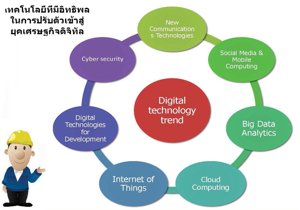 7 เทรนเทคโนโลยีที่มีอิทธิพลต่อการปรับตัวเข้าสู่ยุคเศรษฐกิจดิจิทัล ประกอบด้วย