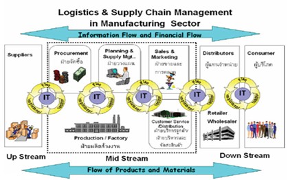 การไหลของวัตถุดิบผ่านการผลิตจนถึงการกระจายสินค้าสำเร็จรูป ผ่านไปยังผู้บริโภคอย่างต่อเนื่องและรวดเร็ว จะสามารถดำเนินการได้อย่างมีประสิทธิภาพและประสิทธิผล ต่อเมื่อมีการนำเอาระบบเทคโนโลยีสารสนเทศซึ่งประกอบด้วยคอมพิวเตอร์ฮาร์ดแวร์ ซอฟต์แวร์ มาประยุกต์ใช้ในทุกกิจกรรมทั้งภายในบริษัทและภายนอกบริษัท เพื่อสร้างความถูกต้องและรวดเร็ว ซึ่งซอฟแวร์ที่ใช้คือระบบการวางแผนทรัพยากรองค์กร (Enterprise Recourse Planning) เพื่อให้การไหลข้อมูลรวดเร็วที่เรียกว่า การจัดการโซ่อุปทาน