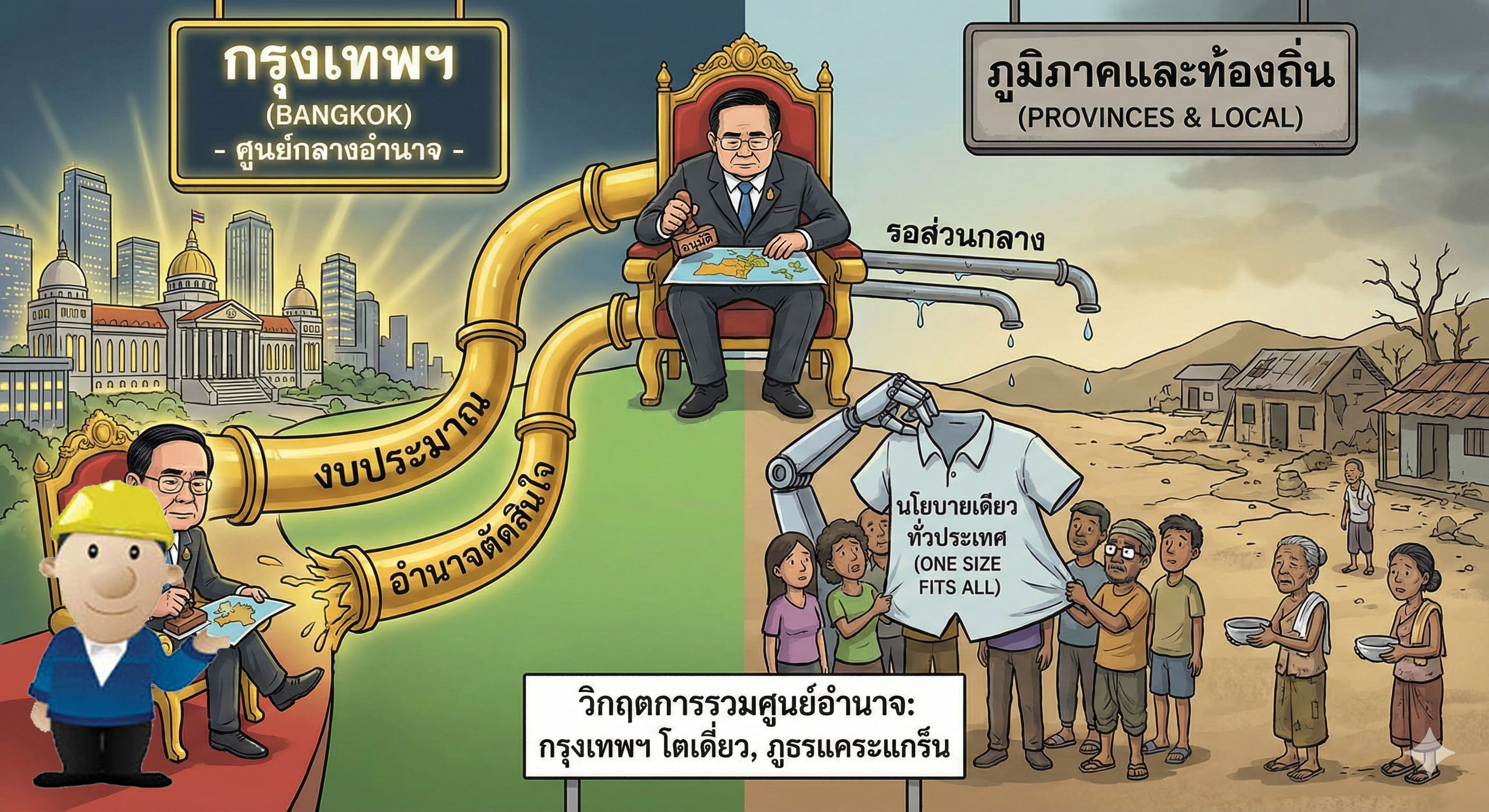บทความนี้จะพาไปสำรวจโครงสร้างที่ทำให้อำนาจล้นเกินในเมืองหลวง ราคาที่คนต่างจังหวัดต้องจ่าย และความจำเป็นเร่งด่วนในการ "คืนอำนาจ" ให้ท้องถิ่น