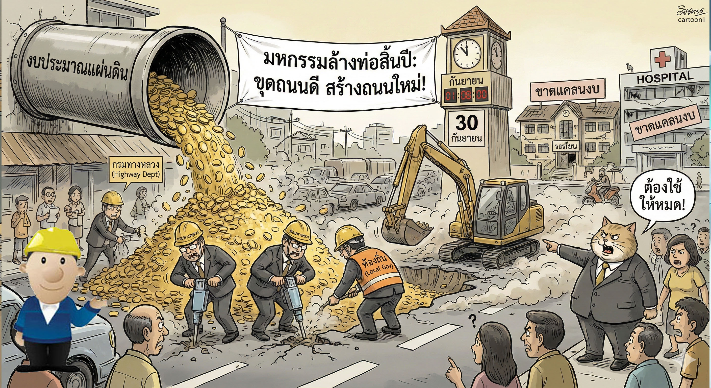 มหกรรมล้างท่อ": ทำไมถนนดีๆ ต้องถูกขุดตอนสิ้นปี? แฉเบื้องหลังระบบงบประมาณที่ "ยิ่งใช้ ยิ่งได้"