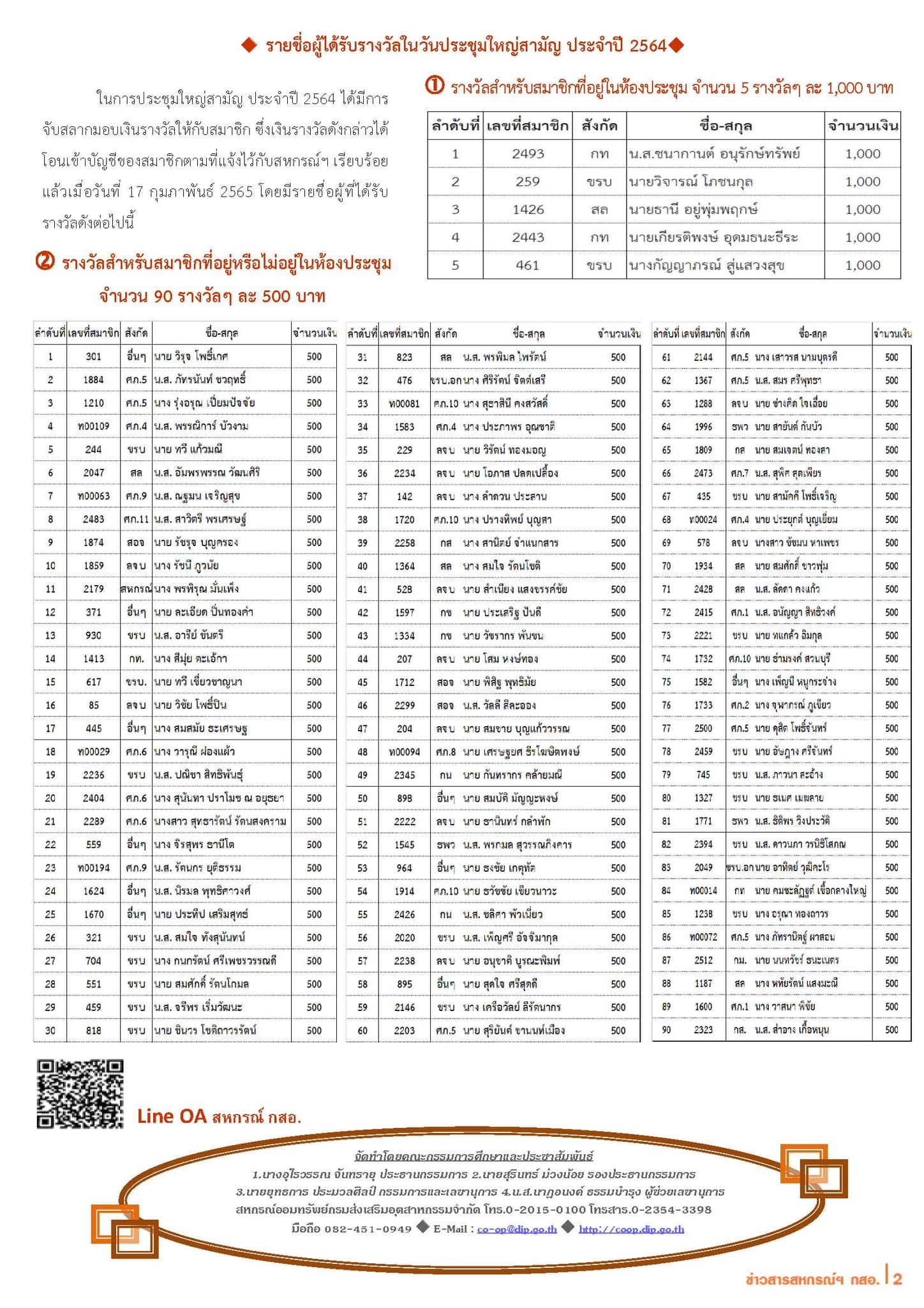 ข่าวประชาสัมพันธ์ สหกรณ์ กสอ. กุมภาพันธ์ 2565