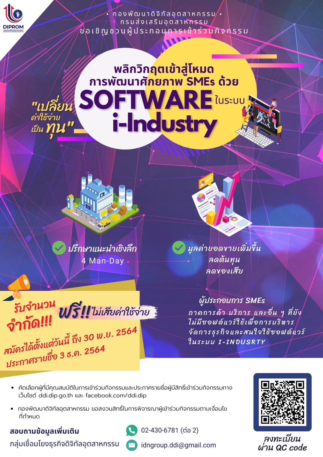 โครงการพลิกวิกฤตเข้าสู่โหมดการพัฒนาศักยภาพ SMEs ด้วย Software ในระบบ I-Industry ภายใต้การดูแลของ กองดิจิทัลอุตสาหกรรม กรมส่งเสริมอุตสาหกรรม ประจำปีงบประมาณ 2565