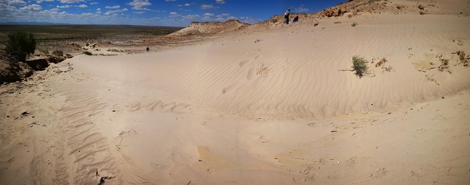 วันที่ 27 กรกฎาคม 2562 ข้าพเจ้ามาถึงบริเวณที่เรียกว่า Tugrugyn Shiree (Toogrook Plateau ที่ราบสูงตู๊กลู๊ก) โกบีใต้ มองโกเลีย ซึ่งอันที่จริงแล้ว เป็นภูเขายอดเรียบที่หลงเหลือมาจากการกัดเซาะผุพังทำลายโดยแม่น้ำและลม มีขนาดประมาณ 1 X 5 กิโลเมตร แบ่งออกเป็นสองลูก(1X1 ตร.กม. ทางตะวันตก)และ (1 X 2.5 ตร.กม. ทางตะวันออก) หน้าผาน่าจะมีความสูงไม่เกิน 50 เมตร หินแข็งที่ปิดทับอยู่บนยอดเขาคือหินกรวดมนอายุไม่เกินล้านปี ประกอบด้วยก้อนกรวดของหินสีเทาเขียว มีขนาดโดยเฉลี่ยประมาณ 5 เซ็นติเมตร มีความมนน้อย การจัดขนาดไม่ดี วางตัวแบบไม่ต่อเนื่องทับบนหินทราย ร่วน สีเทาอ่อน เม็ดละเอียด มีการจัดขนาดดีถึงปานกลาง แนวสัมผัสดังกล่าวในบางบริเวณแสดงลักษณะสูงๆต่ำๆเหมือนท้องแม่น้ำ