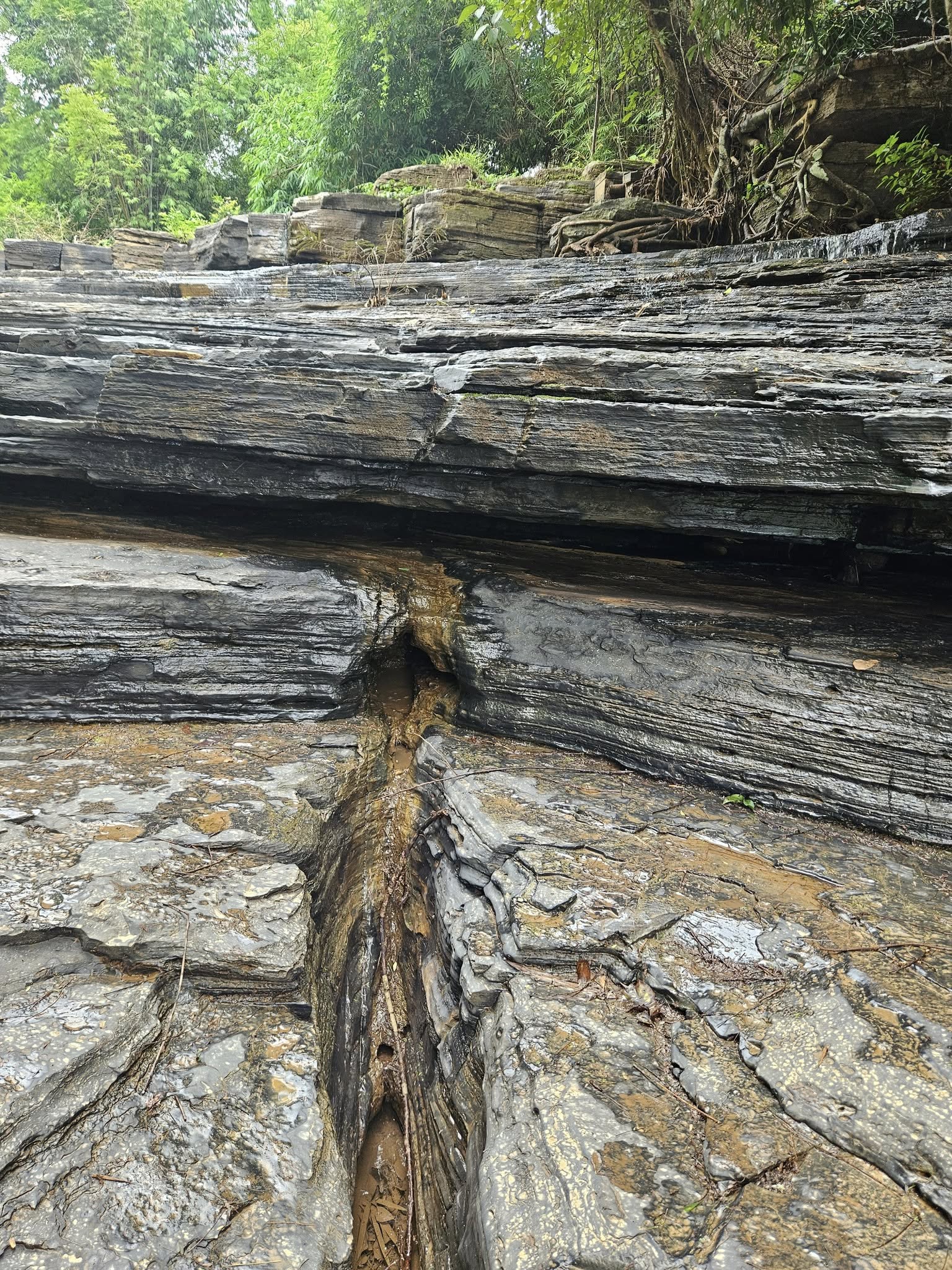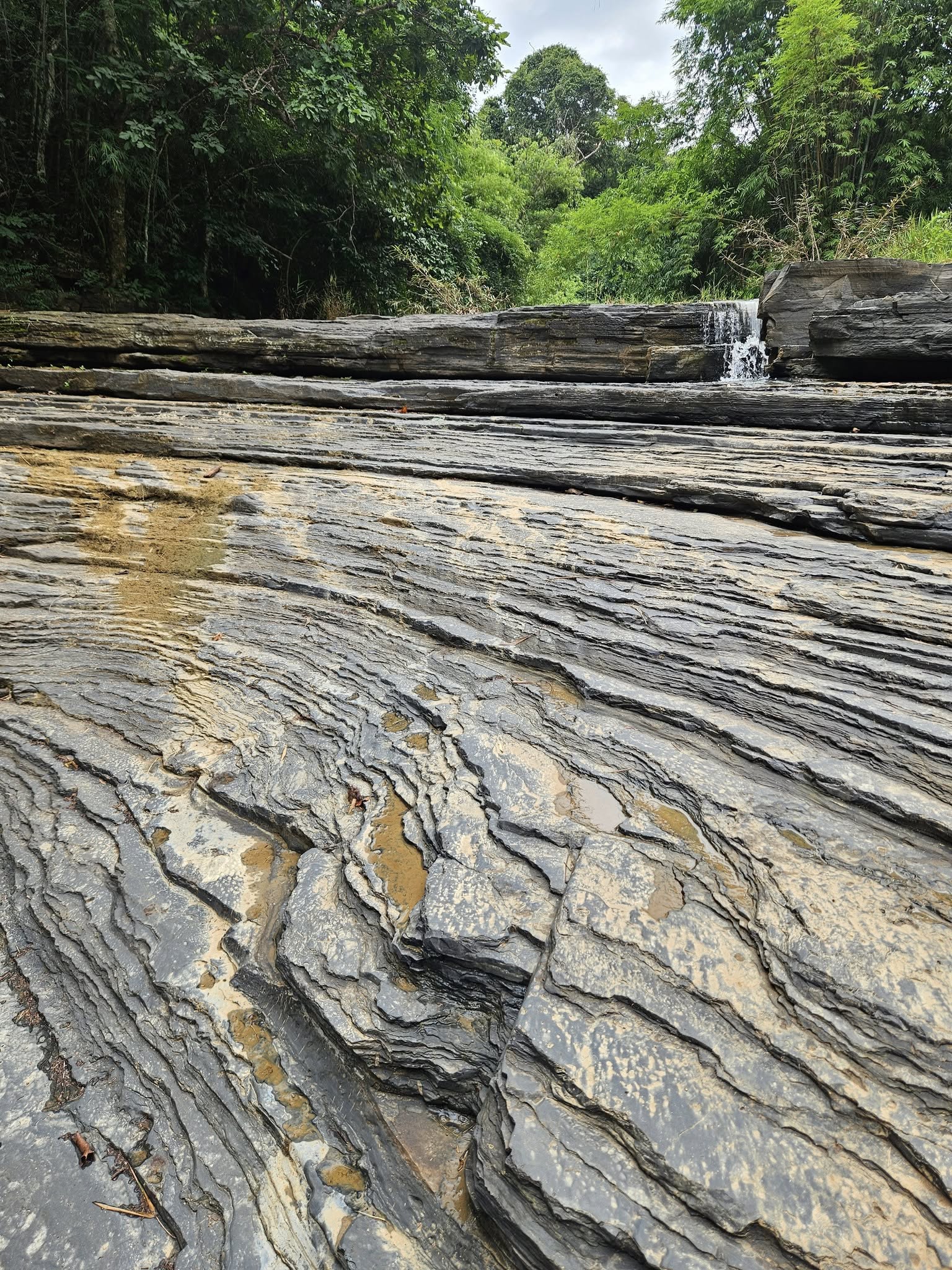 ด้านบนของน้ำตกตาดใหญ่ ที่เป็นชั้นหินขนาดบางๆของ Black shale เป็นน่าเสียดายที่น้ำแห้งไปมาก เพราะไม่มีฝนตกมาหลายเดือน