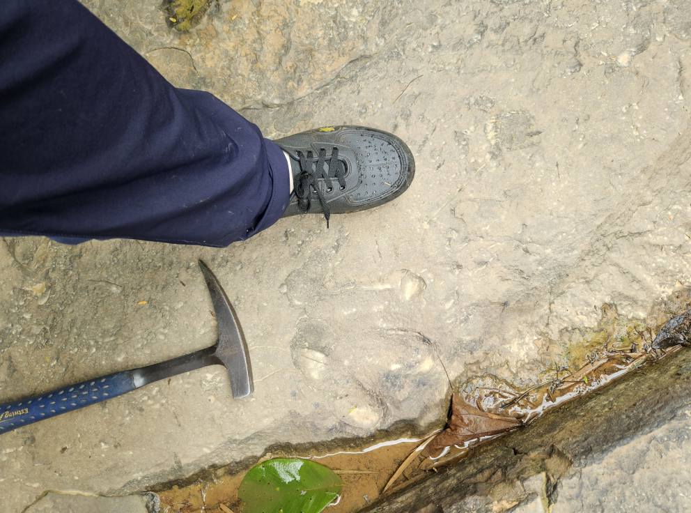 หิน Shale ยุค Triassic อายุ 200 - 240 ล้านปี แถวๆน้ำหนาวนี้ น่าเบื่อมาก เนื่องจากหันไปทางไหน ก็เจอแต่ Shale และ Calcareous shale อยู่แบบเดียว ไม่เห็นหินอย่างอื่นบ้างเลย แต่ ก็มีอะไรดีอยู่เหมือนกันคือ มีการค้นพบรอยตีนของสิ่งมีชีวิตอยู่หลายรอย หลายตัว น่าจะหลายชนิด อยู่หลายแห่ง ซึ่งก็ทำให้นักล่ารอยตีนแบบพวกเรา พอจะตื่นเต้นกันได้บ้าง