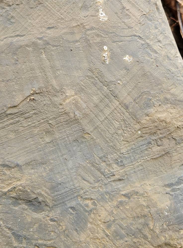 หิน Calcareous shale หินดินดานที่มีส่วนแระกอบของแคลเซียมคาร์บอเนต ที่หยดกรดฟู่ ชั้นบางๆ ซ้อนกันหลายชั้นมากมาย