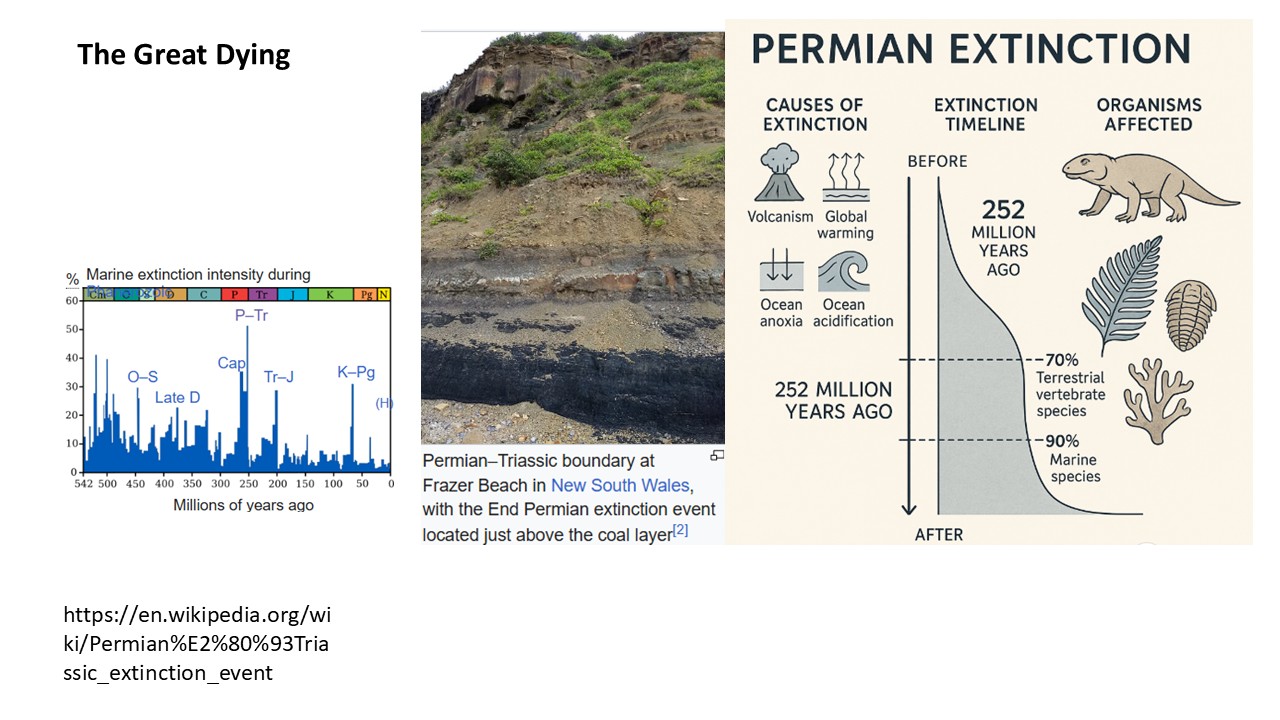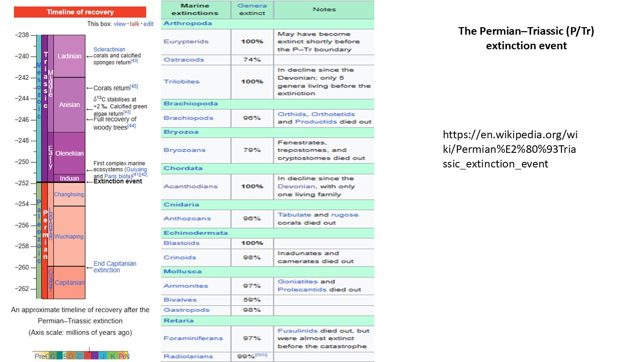 เป็นการสูญพันธ์ของสิ่งมีชีวิตครั้งใหญ่ที่สุดในบันทึกทางธรณีวิทยา มีชื่อเรียกต่าง ๆ เช่น The Greatest extinction event, The Permian–Triassic (P/Tr) extinction event, the great dying, เป็นห้วงเวลาประมาณ 252 Ma. กินเวลา 6หมื่นปี เป็น mark point ของการสิ้นสุด Paleozoic Era, และ Permian Period
