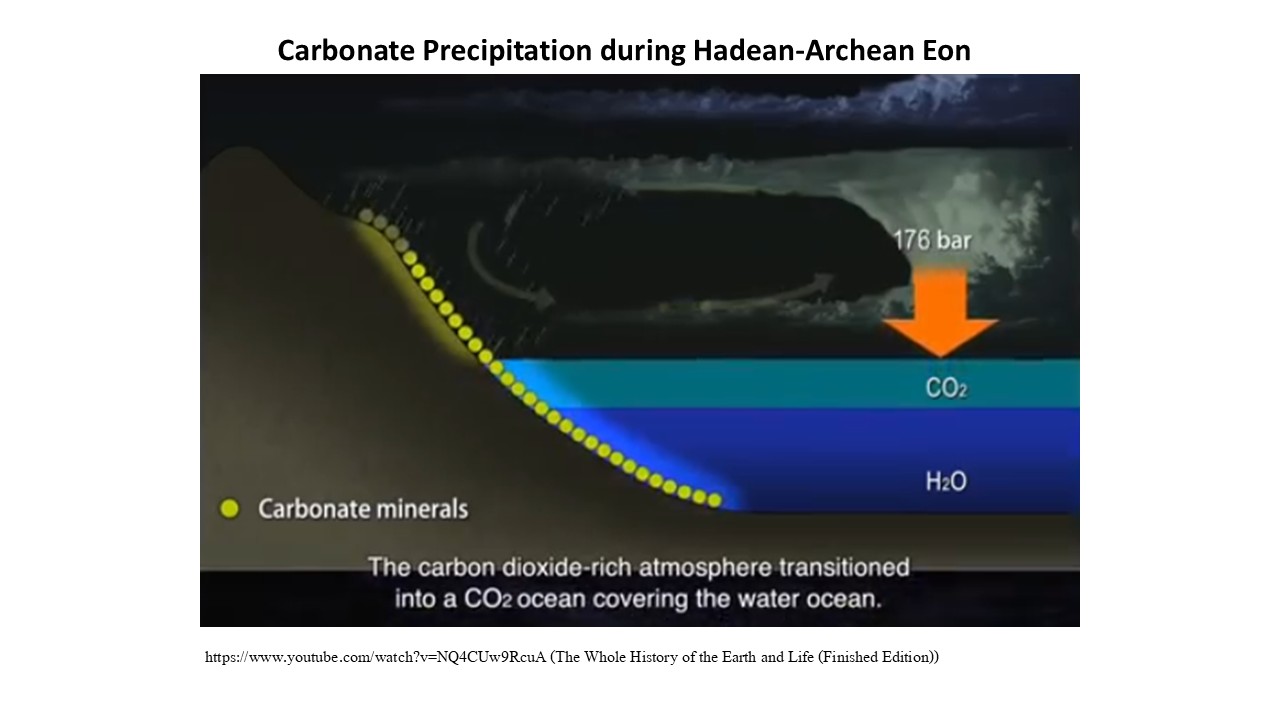 หินปูนที่เกิดก่อนบรมยุค Archean ถึง บรมยุค Meso-Archean (4,370-4,200 Ma.) ขณะที่ผิวโลกเกือบทั้งหมดถูกปกคลุมด้วยน้ำทะเล เปลือกโลกยังร้อนอยู่ (200oC) น้ำจะอยู่ในสภาพเป็นไอน้ำก่อตัวเป็นเมฆปกคลุมผิวโลก ทำให้มีความกดอากาศสูงมาก (>176 bar) น้ำก็กลั่นตัวเป็นฝนตกลงมาบนผิวโลกอย่างรุนแรง จนปกคลุมผิวโลกเกือบทั้งหมด (the water world ) สภาพของน้ำจะเป็นพิษอย่างมาก มีเกลือผสมอยู่มากกว่า 34% มีอนุมูลโลหะโดยเฉพาะเหล็กประกอบอยู่ด้วยในปริมาณมาก ทำให้น้ำเป็นสีเขียว ท้องฟ้าที่มี CO2, N2, และ CH4เป็นส่วนประกอบหลักทำให้ฟ้าเป็นสีแสด มีเกาะภูเขาไฟปรากฏเป็นแผ่นดินเล็ก ๆ ทั่วไป ด้วยความกดอากาศสูงถึง 200 bar ทำให้ CO2 ละลายลงไปในส่วนบนของน้ำสมุทร กลายเป็นกรด carbonic acid และจับกับอนุมูลโลหะ Ca Mg, ตกตะกอนเป็นหินคาร์บอเนต เป็นหินชั้นที่เกิดแบบ direct precipitation ขึ้นครั้งแรกในโลก ต่อมาในห้วงเวลาระหว่าง 4,000-2,500 My. เริ่มมีสิ่งมีชีวิตครั้งแรก มีลักษณะเป็นสิ่งมีชีวิตเซลล์เดียว เป็นแบคทีเรียที่ไม่ใช้ออกซิเจน (anoxic)เป็นต้นกำเนิดของ หินปูนแบบ biochemical จากซากของมัน จากนั้นพัฒนาการของชีวิตทำให้เกิด แบคทีเรียพันธ์ใหม่ ที่สามารถสังเคราะห์แสงโดยอาศัย CO2 จากน้ำและบรรยากาศ เปลี่ยนเป็นพลังงานโดยปฎิกริยา ของMicrobial ที่มีแสงแดดเป็นจุดกำเนิดพลังงาน เกิดน้ำตาล และทิ้งของเสียออกมาเป็นออกซิเจน และฝุ่นปูนได้เรียกว่า Photosynthesizing cyanobacteria แบคทีเรียชนิดนี้จะเกาะรวมกันเป็นกลุ่มก้อนหินปูน ที่มีการเรียงตัวเป็นชั้น ๆ คล้ายลักษณะของกลีบหอม เรียกว่า stromatolite และ stromatoporoid มีลักษณะเป็นแผ่นรูปร่างไม่แน่นอน เริ่มเกิดชั้นหินปูนที่เกิดจากขบวนการ biochemical processes