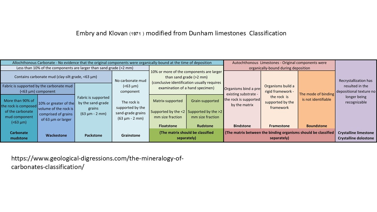 Fig 109.4 Embry and Klovan (1971 ) modified from Dunham limestones Classification