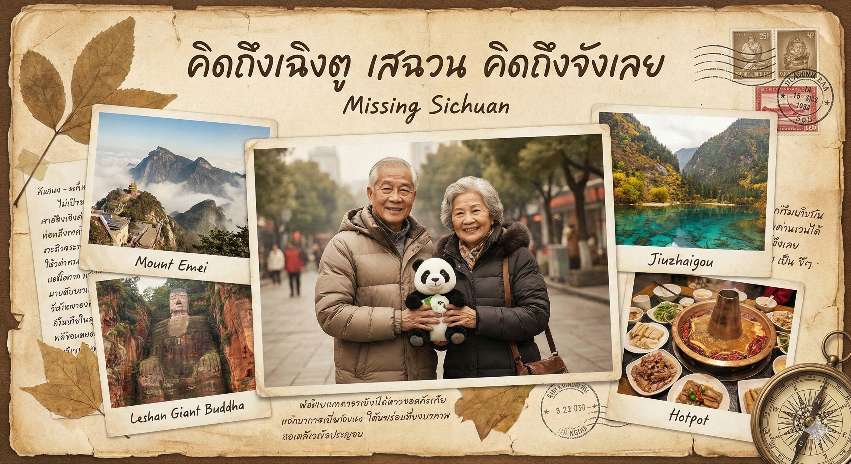 เดินทางร่วมกันมาอย่างยาวนาน ตั้งแต่แสงเช้าที่เฉิงตู ขึ้นภูเขาหิมะดากู ลงหุบเขาสี่ดรุณี จนถึงดินแดนเทพนิยายจิ่วไจ้โกว... บัดนี้ อัลบั้ม วัยเก๋าเที่ยวเฉิงตู (Chengdu Golden Journey) ได้เดินทางมาถึงบทส่งท้ายแล้วครับ กับเพลง Bonus Track ที่เราตั้งใจแต่งให้เป็น "เพลงสามัญประจำทริป" ที่ฟังเมื่อไหร่ น้ำตาก็รื้นด้วยความสุข... "คิดถึงเสฉวน" (Missing Sichuan)