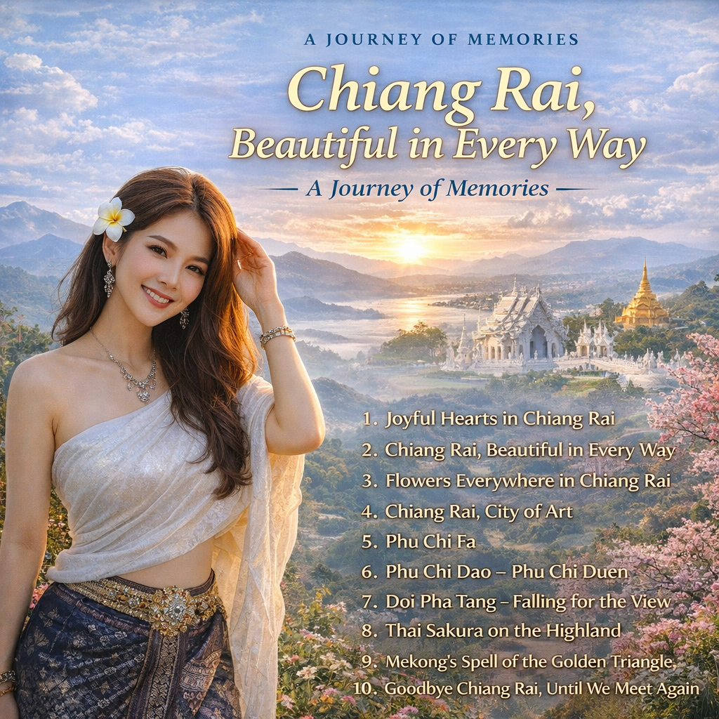 อัลบั้ม เจียงฮายในความทรงจำ (A Journey of Memories Chiang Rai) อัลปั้มเพลงท่องเที่ยวที่ถ่ายทอดความงดงามของ เชียงราย ผ่านเสียงดนตรีอ่อนโยน ฟังสบาย และกลิ่นอายวัฒนธรรมล้านนา ตั้งแต่หมอกยามเช้าบนยอดดอย กาแฟอุ่นในเช้าวันหนาว ศิลปะร่วมสมัยของเมืองเหนือ ไปจนถึงดอกพญาเสือโคร่งบาน มิตรภาพลุ่มแม่น้ำโขง และช่วงเวลาของการอำลาอย่างแสนอบอุ่น