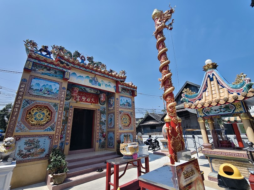 สถาปัตยกรรมจีนอันงดงาม: ตัวศาลเจ้าโดดเด่นด้วยศิลปะการก่อสร้างและตกแต่งแบบจีนโบราณ ทั้งภาพวาดฝาผนังและประติมากรรมที่เต็มไปด้วยความหมายทางวัฒนธรรม