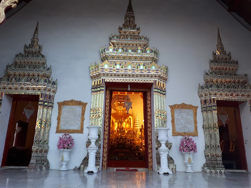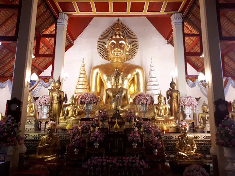 ภายในวิหารเป็นที่ประดิษฐาน พระพุทธรูปปางลีลา ซึ่งเป็นพระพุทธรูปที่แสดงถึงพุทธลักษณะที่งดงามและสง่างาม การได้มาสักการะพระพุทธรูปองค์นี้ถือเป็นสิริมงคลอย่างยิ่งสำหรับพุทธศาสนิกชน นอกจากนี้ ภายในวิหารยังมีภาพจิตรกรรมฝาผนังที่บอกเล่าเรื่องราวพุทธประวัติและวรรณคดีทางศาสนาได้อย่างละเอียดลออ